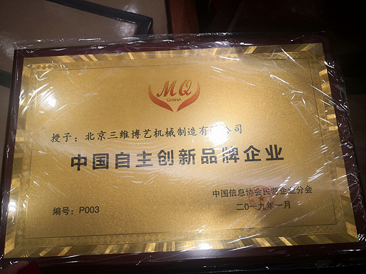 熱烈祝賀北京三維博藝機械制造有限公司2019年1月獲得中國自主創(chuàng)新品牌企業(yè)稱號,新的一年有個好的開始,讓我們?nèi)w員工擼起袖子加油干,保護好今天擁有的,創(chuàng)造明天想要的。